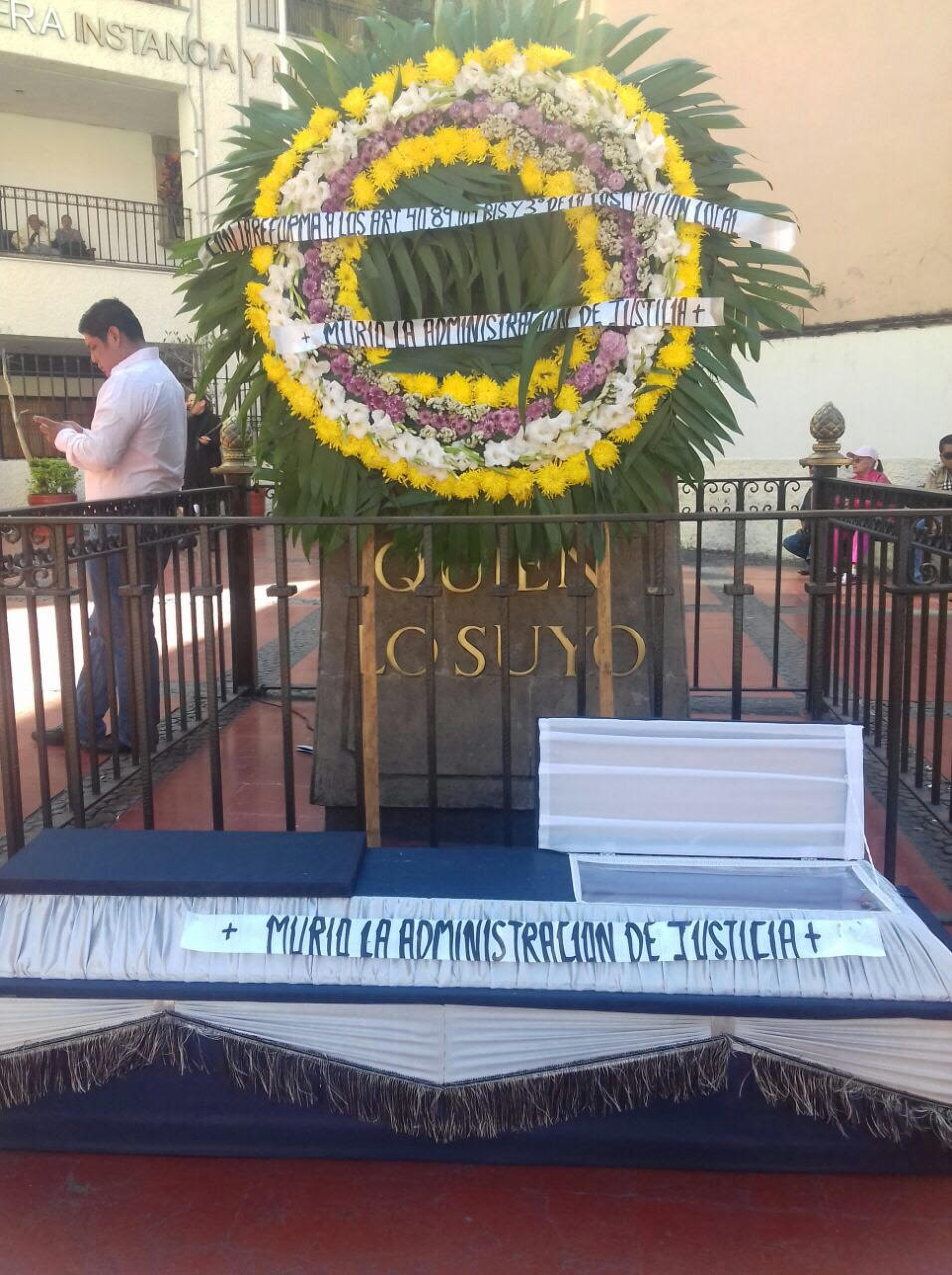 Por ello los abogados colocaron al pie de la estatua que representa a la “Diosa de la Justicia”, una corona floral y un ataúd como signo de que la actual presidenta del Poder Judicial en Morelos, María del Carmen Cuevas López ha sepultado la administración de justicia por ceder a disputas políticas de los Poderes Ejecutivo y Legislativo.