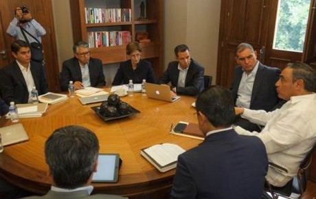 El gobernador saliente y entrante se reunieron con los integrantes de la Comisión Mixta de Transición a la que entregó el primer balance de diagnóstico que guardan las 82 dependencias de gobierno del estado.