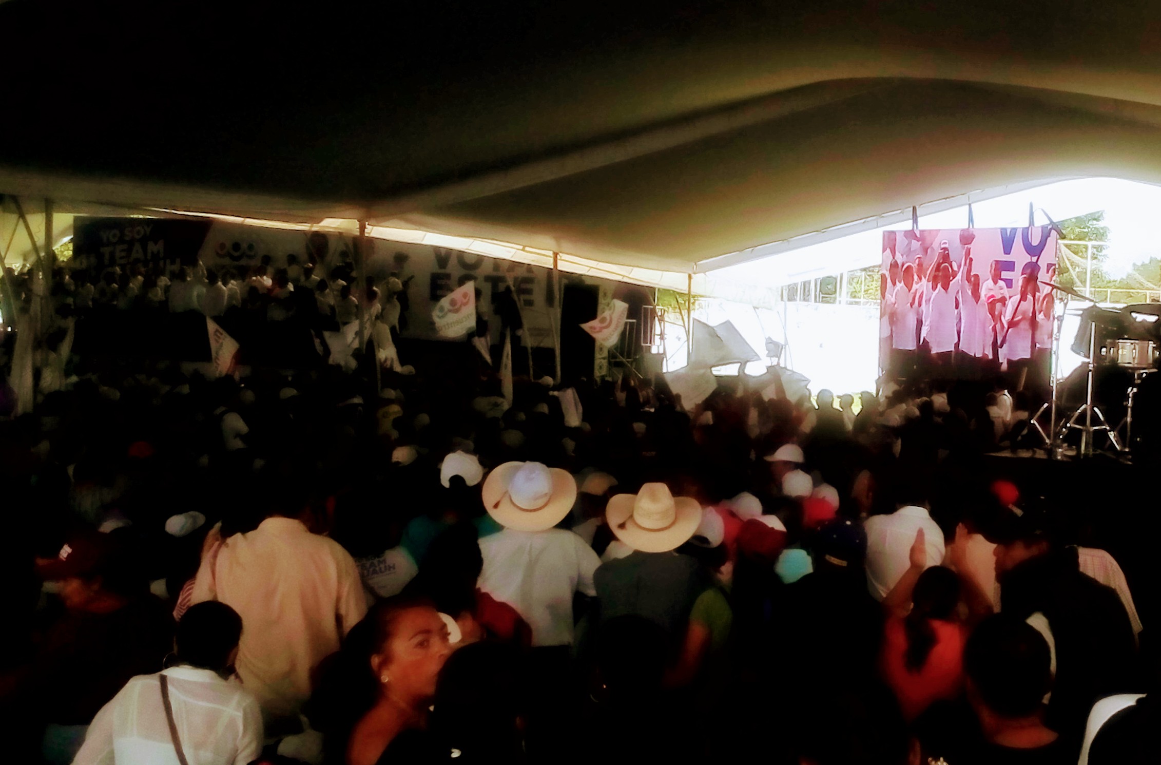 En su declinación, Vera llegó con varios de sus seguidores al sitio donde se realizaba el evento, en la colonia El Empleado al Norte de Cuernavaca, donde subió al templete junto al ex fubtbolista, a quien momentos después levantó su brazo en señal de triunfo.