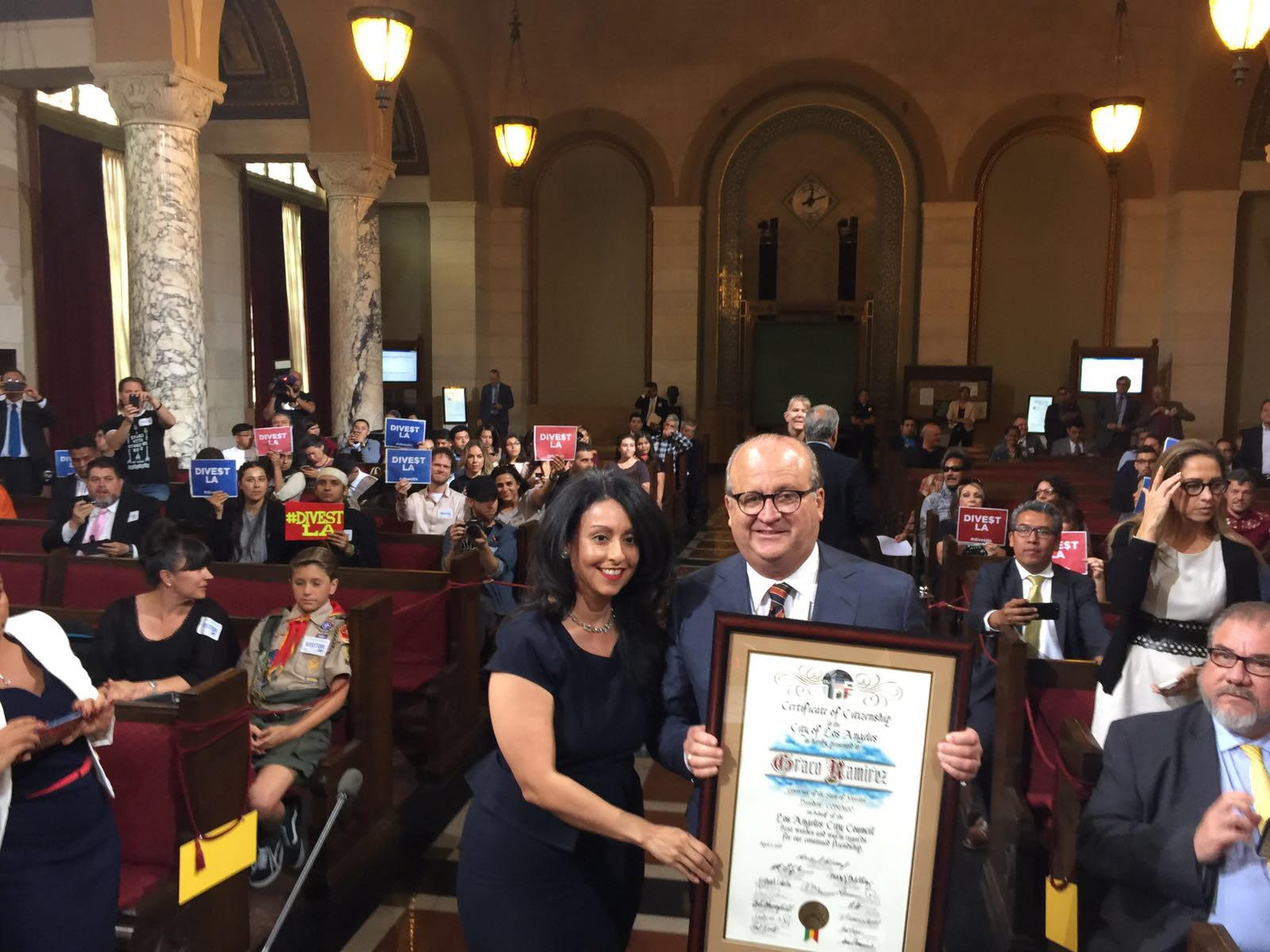 El alcalde de Los Ángeles, entregó a los gobernadores mexicanos el certificado de ciudadanía honoraria.