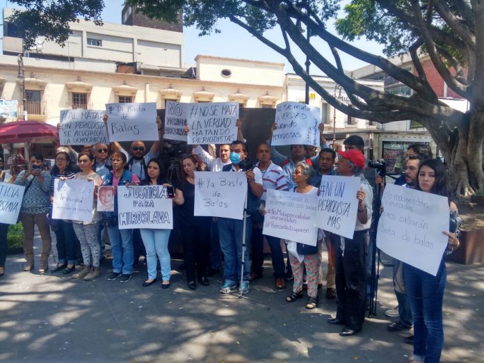 Congregados en la Plaza de Armas de Cuernavaca reporteros, corresponsales y representantes de diversas organizaciones civiles portaron carteles con las frases como ¡Justicia para Miroslava! y “No se calla la verdad matando periodistas!. Exigiendo a su vez al Estado que cesen los ataques contra los periodistas del país.
