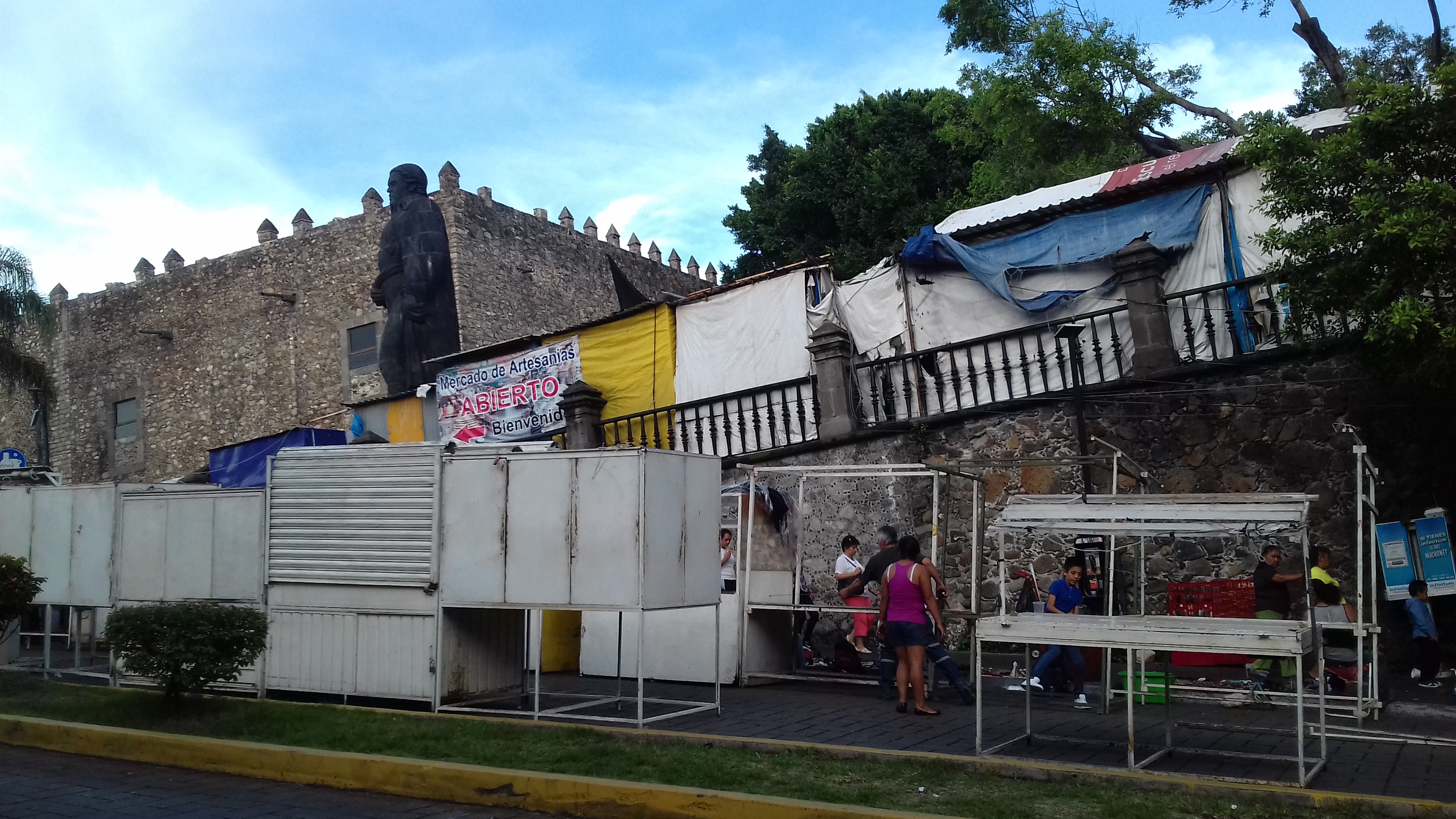 Ayer por la tarde los comerciantes de este lugar, ubicado en pleno Centro Histórico de Cuernavaca, comenzaron a desalojar esta plaza que pertenece a Palacio de Cortés para instalar las estructuras de sus puestos de plata sobre Bulevar Juárez.