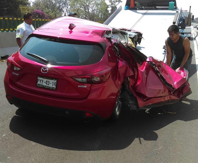 En el kilómetro 80, debajo del puente de Chamilpa el conductor del coche perdió el control de su vehículo, chocó contra el muro central y volcó debido al supuesto exceso de velocidad.
