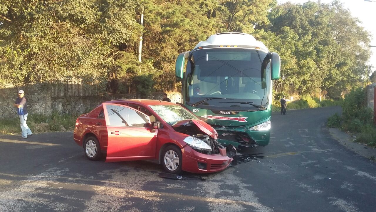 Al parecer, el conductor del auto compacto invadió el carril por donde circulaba el autobús chocando de frente contra este.