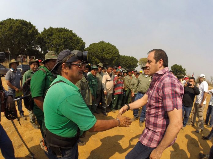 Para combatir el incendio que se registró hace 24 horas en estas comunidades de Cuernavaca que limitan con el Estado de México y que obligó a elementos del Ejército Mexicano desalojar a 200 familias; el gobierno de Blanco Bravo requirió el apoyo de dichas autoridades que desplegaron a cien bomberos en 22 unidades que se sumaron a las labores durante la madrugada.