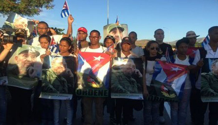 “Gloria al comandante, yo soy Fidel”, son las estrofas aprendidas de memoria que ahora corean jóvenes de quizás 20 años, que parecen comandados por una mujer de la misma edad que alza la voz para alentar a secundarla.