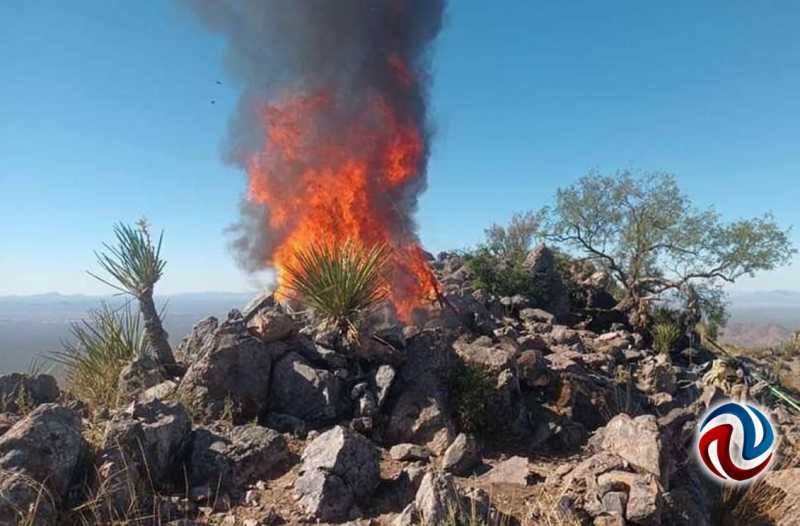 HERMOSILLO SON 4 DE NOVIEMBRE DE 2023.- Autoridades de seguridad pública de los tres órdenes de gobierno en Sonora, detectaron y destruyeron campamentos del crimen organizado en la zona cerril de Caborca, reveló la Mesa Estatal de Seguridad.