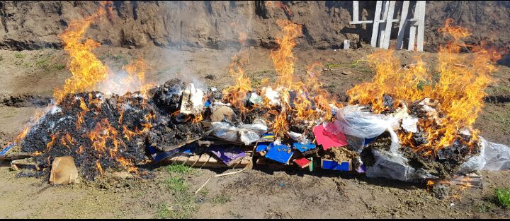 La Procuraduría General de la República informó que durante el fin de semana se llevó a cabo la incineración de mariguana, cocaína, pastillas psicotrópicas y minicasinos en e campo militar El Encino ubicado en dicha comunidad del municipio de Huitzilac.