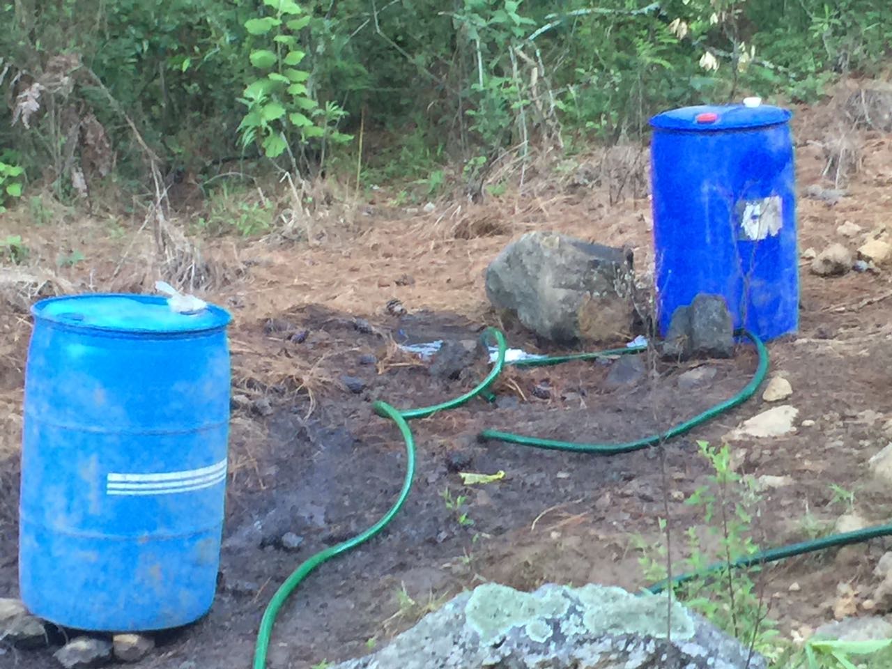 La policía Morelos acudió al lugar para investigar encontrando en el cerro pedazos de manguera conectados entre si hasta un ducto de donde se extraía gasolina de manera ilegal, además de varios tambos azules de 200 litros cada uno llenos de combusstible.