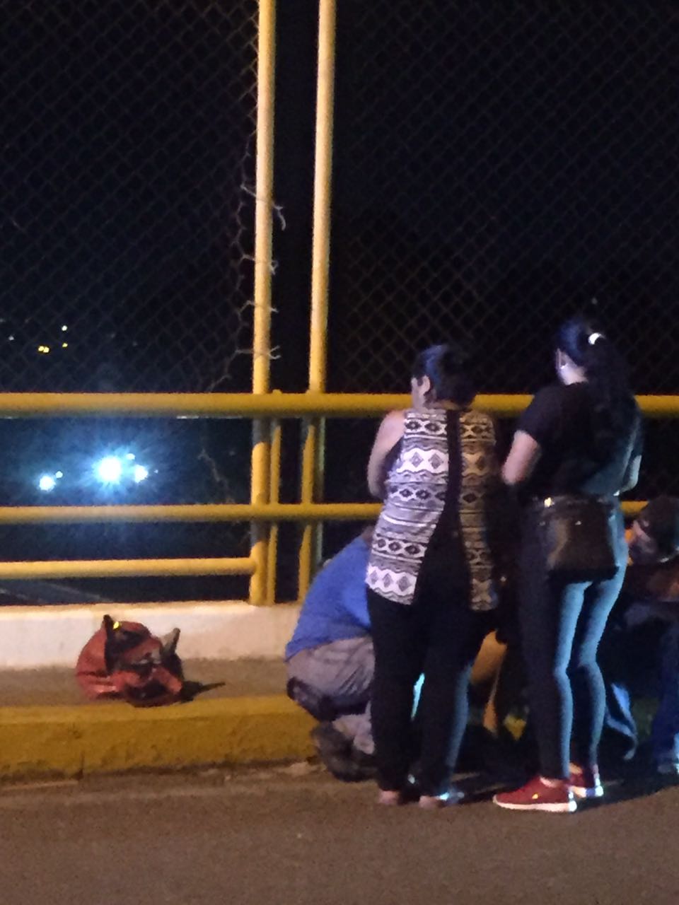 Sobre el barandal del puente, los elementos policíacos encontraron a Alondra, de 19 años, quien había caminado por la orilla del enrejado de paso vehicular para tratar de saltar hacia la autopista con la intención de quitarse la vida ya que según ella, había tenido una discusión con su novio.