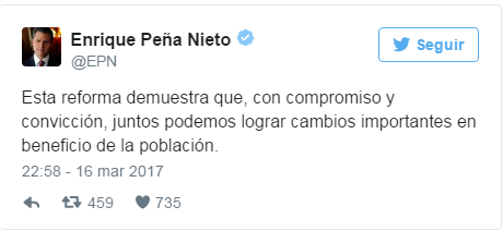 «Esta reforma demuestra que, con compromiso y convicción, juntos podemos lograr cambios importantes en beneficio de la población», publicó el mandatario.