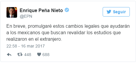 CIUDAD DE MÉXICO (La Silla Rota).- El presidente Enrique Peña Nieto adelantó que en breve promulgará los cambios legales que ayudarán a los mexicanos que buscan revalidar en el país los estudios que realizaron en el extranjero.
