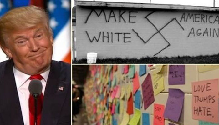 En el estado de Nueva York apareció en una pared la leyenda “Haz a Estados Unidos blanco otra vez”, con el emblema nazi de la suástica. Tanto la Policía como el gobierno estatal decidieron investigar el incidente como un crimen de odio, de acuerdo con el gobernador Mario Cuomo.