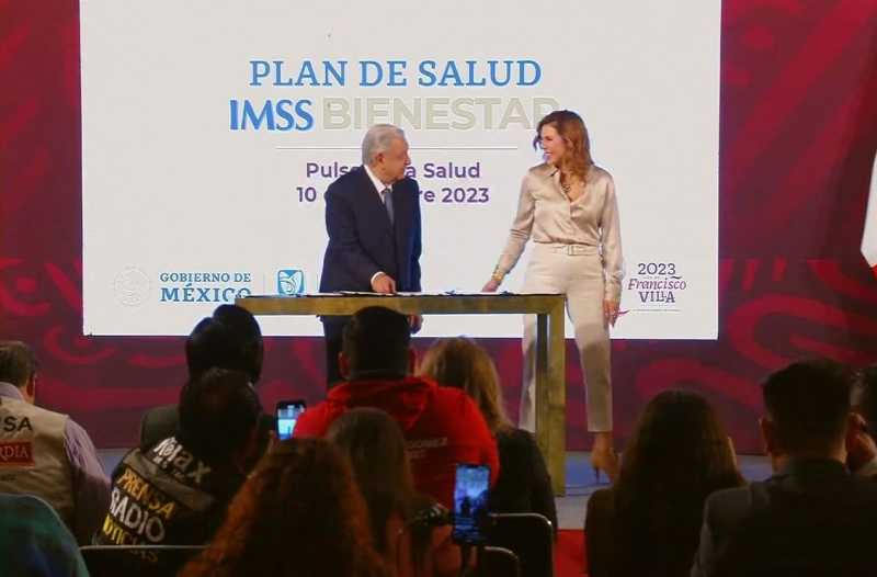 CIUDAD DE MÉXICO CDMX 10 DE OCTUBRE DE 2023 (AFN).- El presidente Andrés Manuel López Obrador, junto con gobernadores y representantes de 23 estados, firmó este día el «Acuerdo Nacional de la Federalización de los Servicios de Salud», con lo que el sistema IMSS Bienestar ofrecerá atención médica y medicamentos gratuitos en beneficio de 53.2 millones de mexicanos; en el acto realizado en la conferencia «mañanera» en Palacio Nacional participó la gobernadora de Baja California, Marina del Pilar Ávila Olmeda.