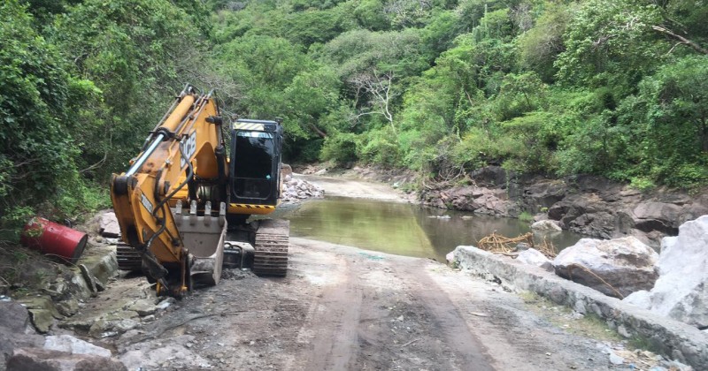 Señaló que las cuadrillas de trabajadores de la SOP son quienes llevan a cabo las labores de rehabilitación del camino; mencionó que entre los trabajos que se realizan están los de protección y reforzamiento de los taludes, los cuales se realizan con las mismas rocas que se derrumbaron de los cerros.