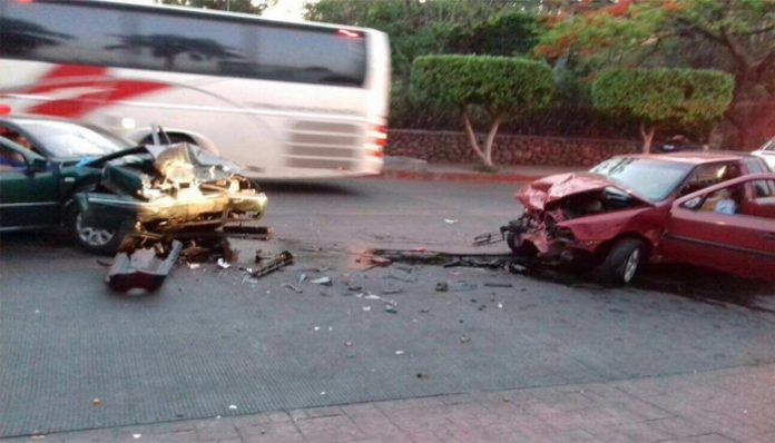 Autoridades viales informaron que el accidente ocurrió la mañana de este sábado cuando el conductor de una camioneta Pointer color roja impactó a un auto Bora blanco y a un Jetta color verde.