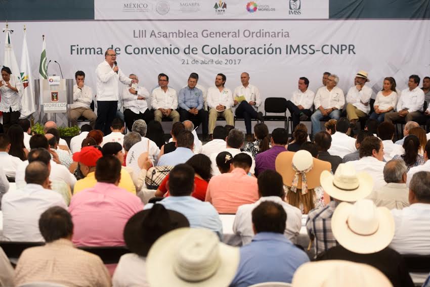 Graco Ramírez y José Calzada señalaron lo anterior al asistir a la LIII Asamblea General Ordinaria de la Confederación Nacional de Propietarios Rurales y, firmar como testigos de honor, el convenio entre el IMSS y la CNPR para garantizar atención médica y seguridad social a los productores adheridos a esta organización campesina.