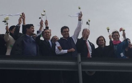 Académicos, intelectuales, niños, adultos, familias y políticos como el fundador del PRD, Cuauhtémoc Cárdenas, y el senador Armando Ríos Piter, asistieron a esta protesta también con listones blancos.