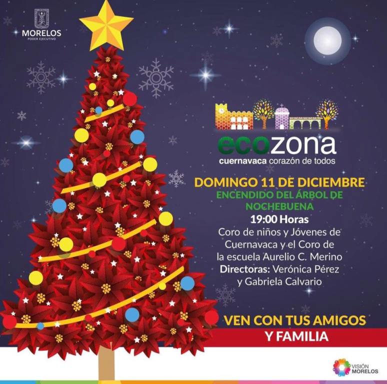 El acto del encendido del árbol comenzará a las 19:00 horas, cuando a la Plaza de Armas “General Emiliano Zapata” lleguen los integrantes del Coro de Niños y Jóvenes de Cuernavaca y del Coro de la Escuela “Aurelio C. Merino” para presentar su programa de villancicos.