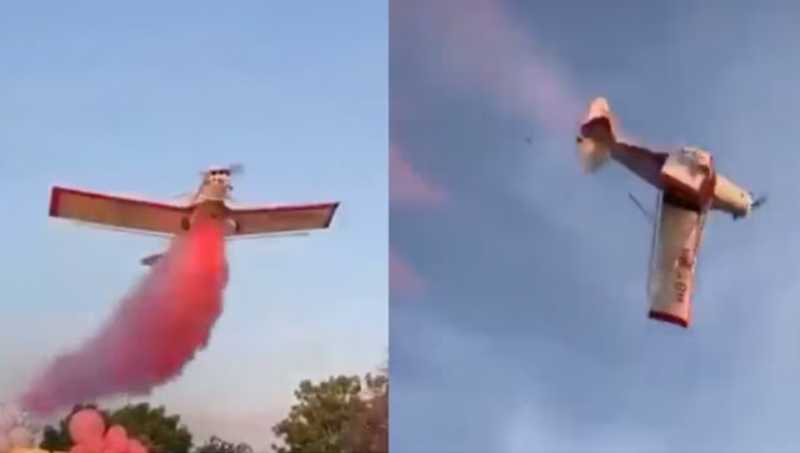 En esa ocasión el incidente se grabó, debido a que ocurrió luego de que la avioneta comenzara a lanzar humo rosa, lo que dejó en shock a los asistentes a la reunión.