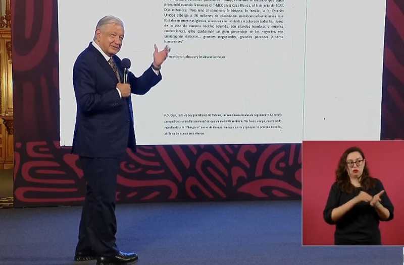 Previo a que leyó la misiva para el también ex presidente de Estados Unidos, López Obrador refirió que en todas las campañas políticas, de cualquier país del mundo «hay mucha pasión, mucha retórica y se habla en demasía», y por ello considera que los anuncios sobre supuestas prohibiciones en materia de inversión en otros países, e incluso de romper relaciones comerciales con México, generalmente esto «no es serio».