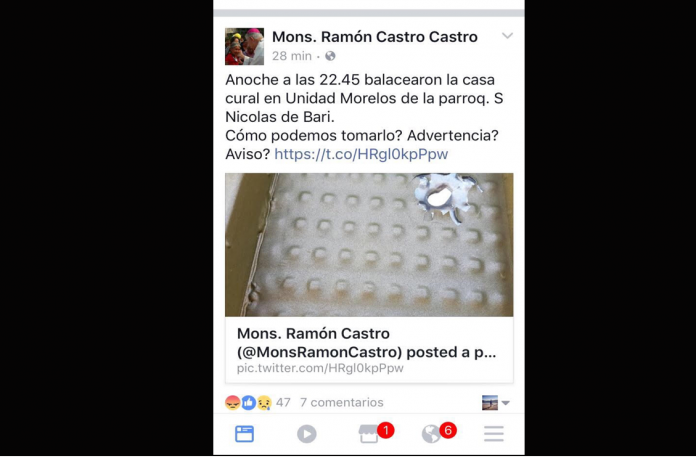 Cuernavaca, Morelos 12 de abril de 2017 (WDC).- Justo en la víspera del «Jueves Santo» fue atacada a balazos la Casa Cural de la parroquia San Nicolás de Jojutla, según lo denunció esta tarde el obispo de la Diócesis de Cuernavaca, Ramón Castro Castro.