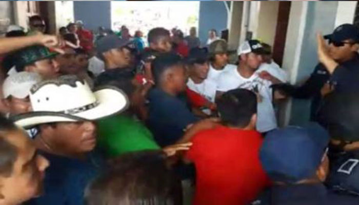 Esto causó molestia entre los pobladores que decidieron hacer frente a la autoridad. Marcharon enardecidos por las calles hasta llegar al Palacio Municipal en donde realizaron destrozos y tiraron la puerta principal de acero en donde tuvieron una confrontación con la policía estatal.