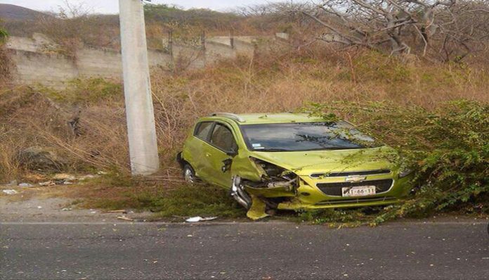 En ese lugar, una mujer perdió el control de su auto Chevrolet Spark color verde con matrícula de Morelos, el cual se salio del camino y se estampó contra un poste.
