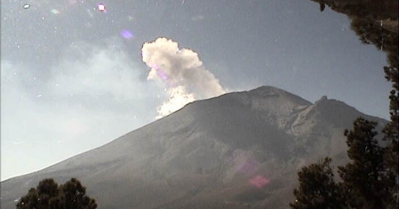 Por medio de los sistemas de monitoreo del volcán Popocatépetl se identificaron 84 exhalaciones acompañadas de vapor de agua, gases volcánicos y bajo contenido de ceniza. Adicionalmente se registraron 45 minutos de tremor y un sismo volcanotectónico ayer a las 12:34 h con magnitud de 2.2