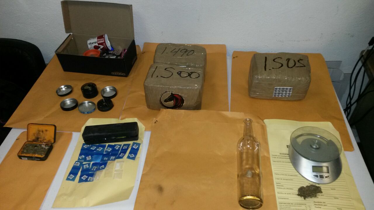 En el inmueble fueron asegurados casi cinco kilogramos de marihuana, 26 bolsas con cocaína, además se hallaron dos radios de comunicación, básculas electrónicas, documentos , entre otras cosas.