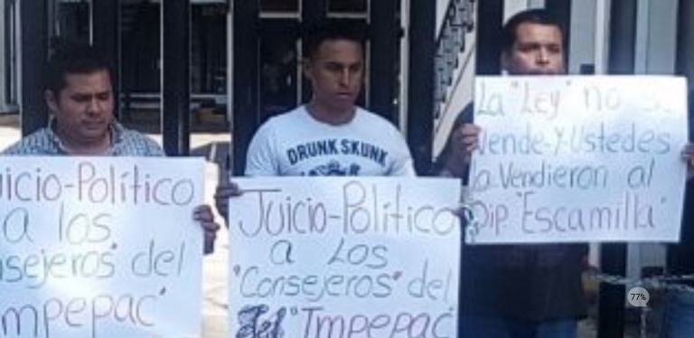 Como una manera de presión mediática, algunos de los inconformes decidieron encadenaron a la reja de la entrada al órgano electoral y pidieron una respuesta favorable al Consejo Estatal Electoral para quedestituyan al diputado Jesús Escamilla Casarrubiascomo dirigente partidista porque está violentando sus estatutos. Lamentablemente para su casusa, aseguran, no les han dado la razón y siempre ha sido favorable para el legislador.