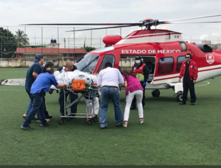Cuautla, Morelos 23 septiembre 2017 (WDC).- Una Unidad de Rescate Aéreo del Estado de México, mejor conocida como «Relámpagos», aterrizó esta tarde en la cancha de futbol de la colonia Miguel Hidalgo de Cuautla para trasladar a una brigadista que fue atropellada ayer en la comunidad de Hueyapan en Tetela del Volcán, donde apoyaba a los damnificados del sismo del 19 de septiembre.