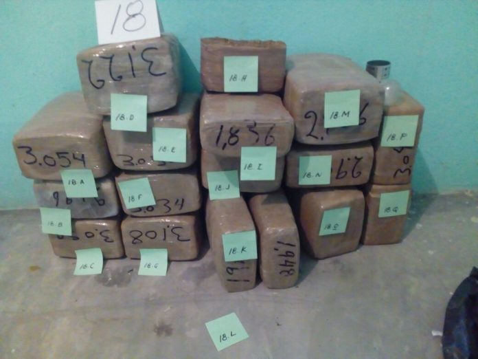 En el lugar fueron incautados 17 paquetes de vegetal verde característico a la marihuana y dos bolsas pequeñas transparentes con el mismo contenido; enervante que asciende a un peso aproximado de 40 kilogramos.
