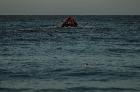 Los contornos oscuros de la tierra acababan de ponerse a la vista cuando el contrabandista forzó a todos a lanzarse al mar.