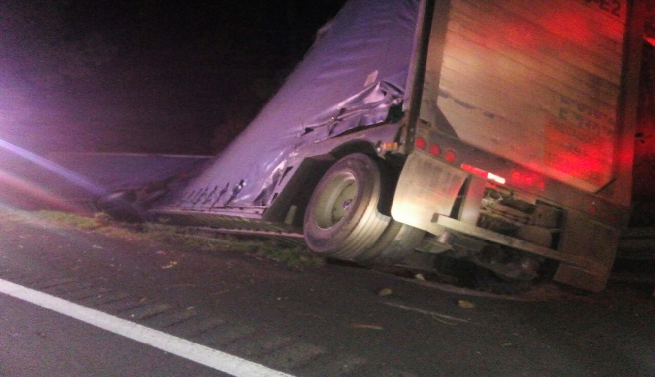 El tractocamión derribó un árbol que cayó hacia los carriles de la carretera federal, dañando tres automoviles, sin embargo, no hubo personas lesionadas.