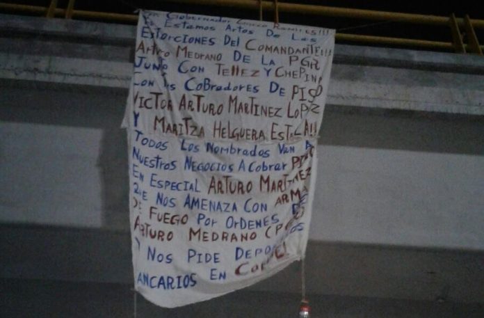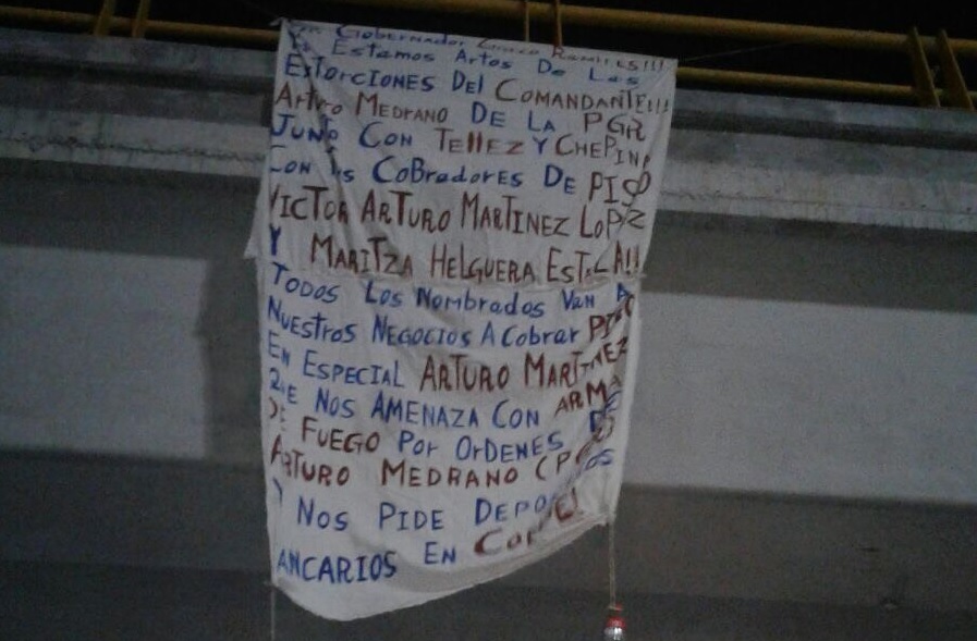 En este caso, el mensaje decía: «ATENCION CIUDADANA Ya Estamos Artos De Las Extorciones De La PGR Del Cte Arturo Medrano Sergio Telles Ernesto Chepina Que Nos Cobran PISO Con Arturo Martines Lopes y Maritza Helguera Estela» (sic).