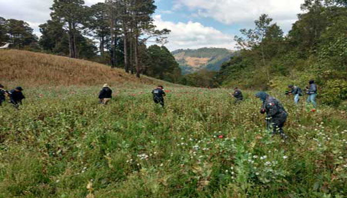 Oaxaca de Juárez, Oaxaca, México; 5 de febrero de 2017.- La Procuraduría General de la República (PGR), a través de la Subprocuraduría de Control Regional, Procedimientos Penales y Amparo (SCRPPA), Delegación de Oaxaca, dio a conocer que destruyó un plantío de amapola en terrenos del municipio de Santiago Textitlán, Sola de Vega, región de la Sierra Sur de Oaxaca.