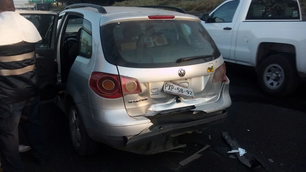 La mujer refirió que disminuyó su velocidad por el tráfico que había en ambos carriles de la carretera cuando el taxi se impactó detrás de su camioneta mientras que el taxista mencionó que la automovilista se detuvo repentinamente.